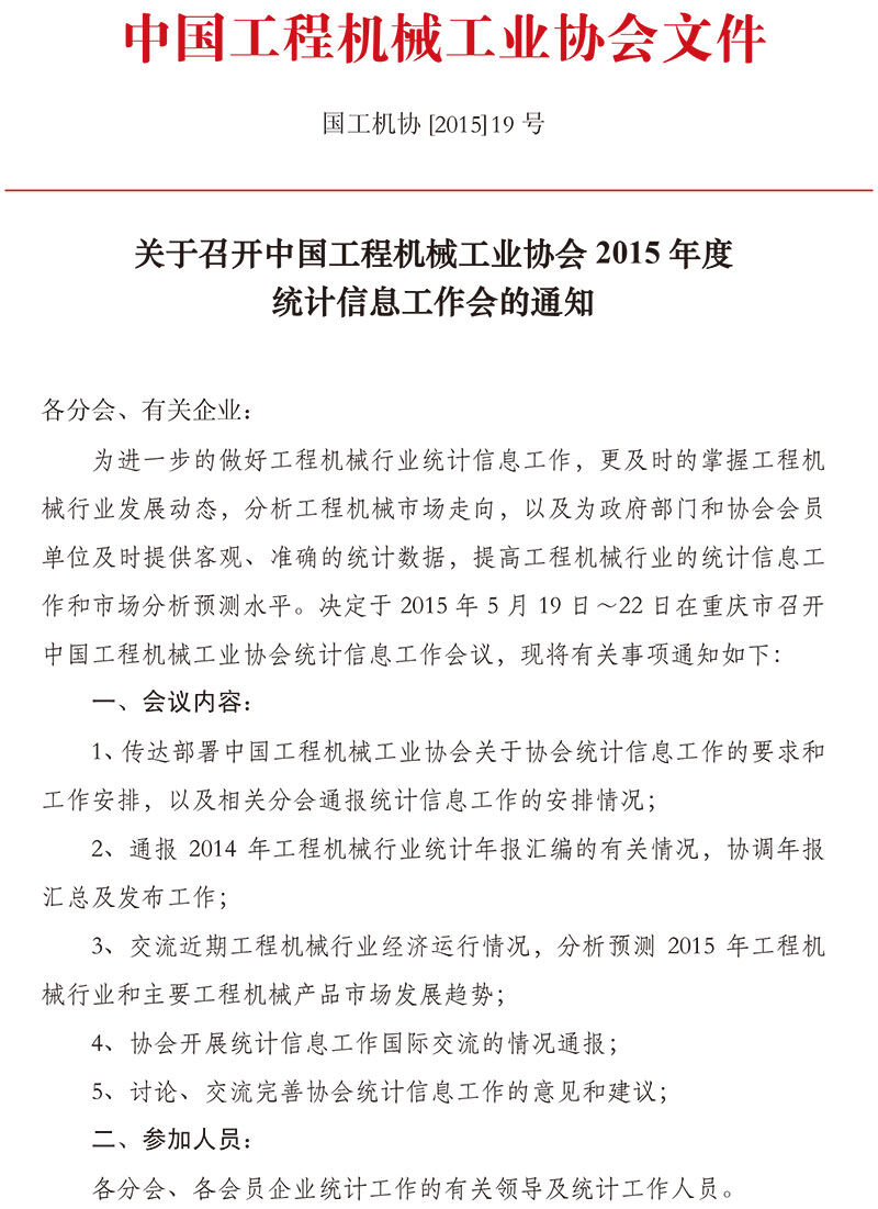 關于召開中國工程機械工業(yè)協(xié)會2015年度統(tǒng)計信息工作會的通知